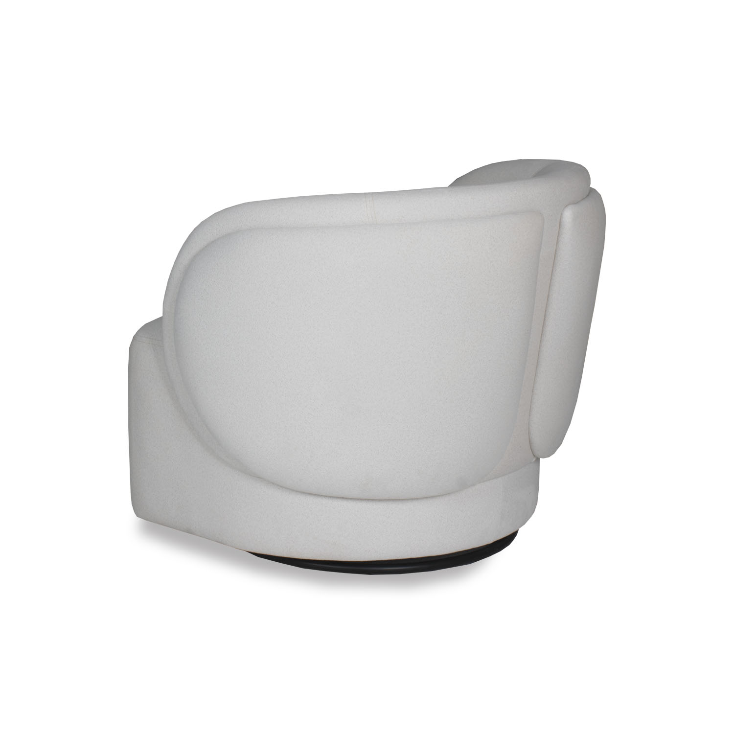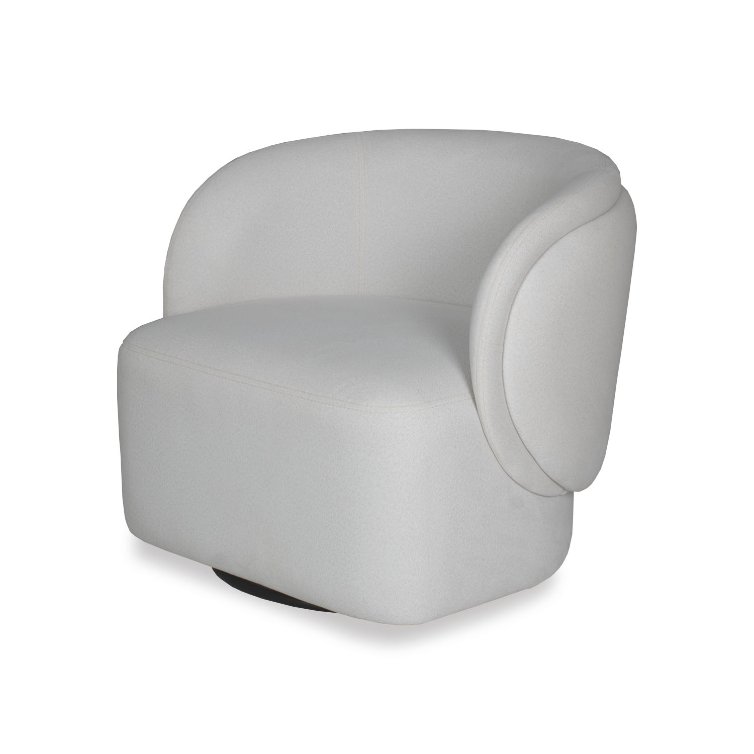 Diseño moderno que combina estilo y funcionalidad. Su base giratoria ofrece movimiento y confort, mientras que su tapizado en tono claro aporta luminosidad y elegancia a cualquier espacio. Ideal para crear un rincón acogedor y refinado.