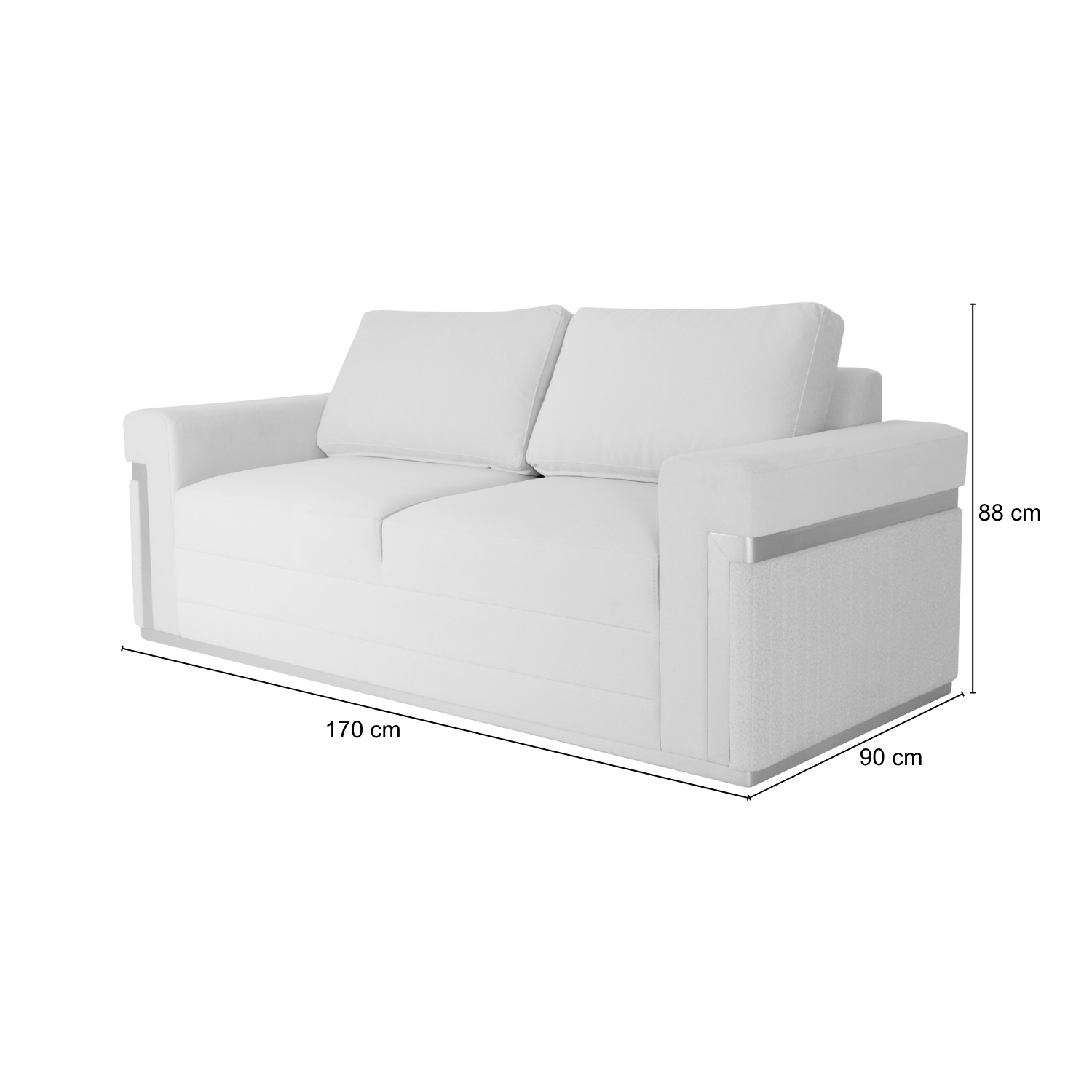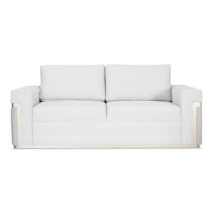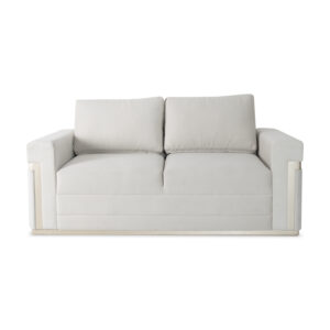 Diseño sofisticado y contemporáneo. Este sofá combina líneas limpias con apliques en roble pintados en color champaña, que realzan su estilo moderno. Tapizado en tono claro, ofrece gran confort y un toque elegante ideal para cualquier sala.